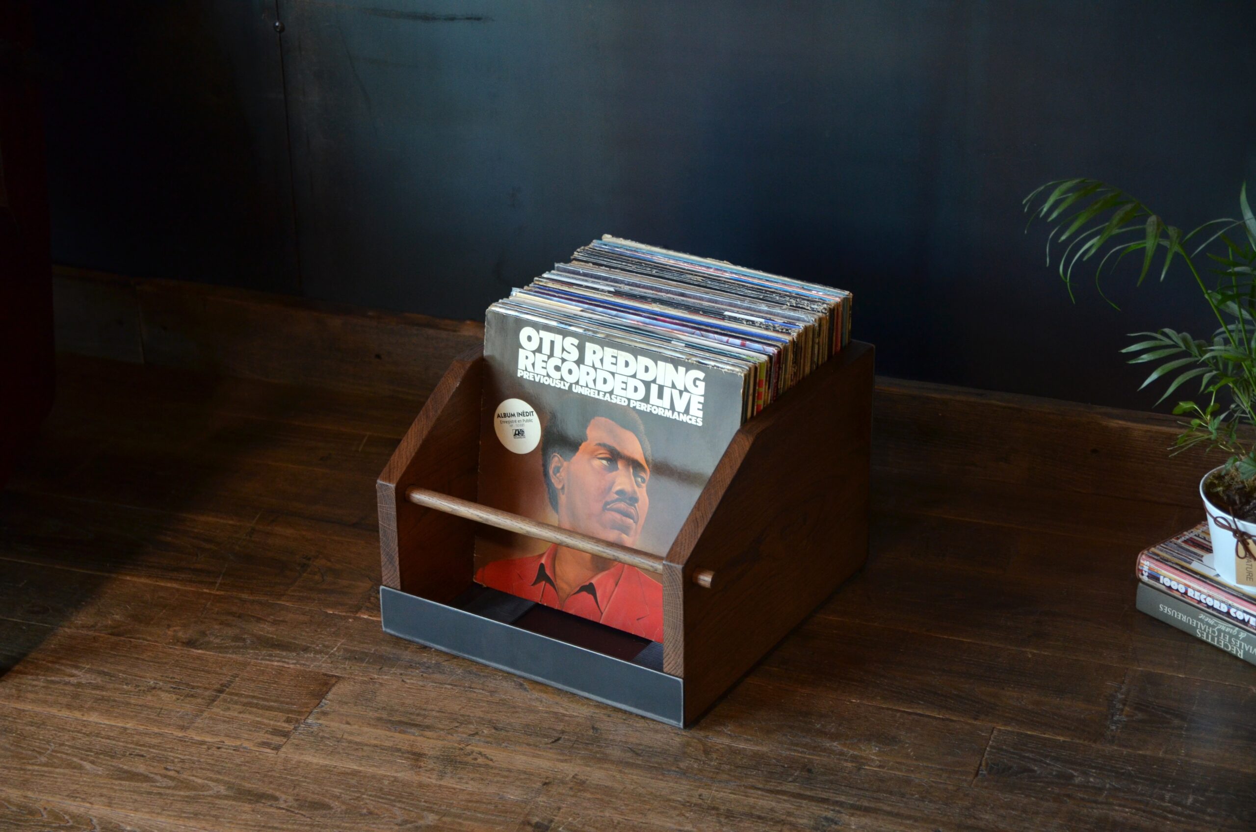 Bac de consultation artisanal pour 80 vinyles 33T